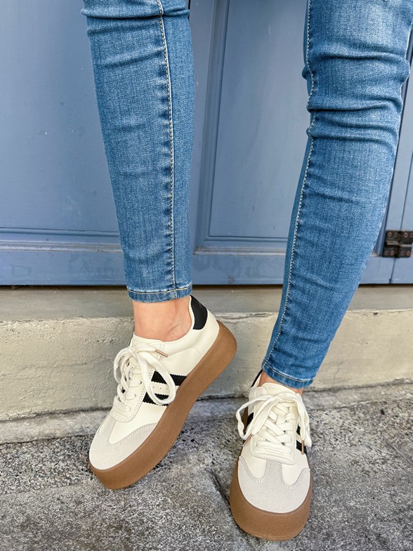‧ 材質:高級合成皮,T字拼色為麂皮