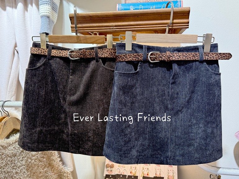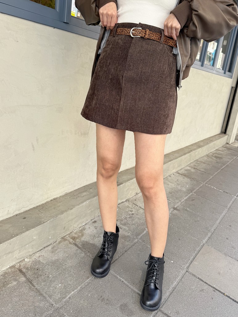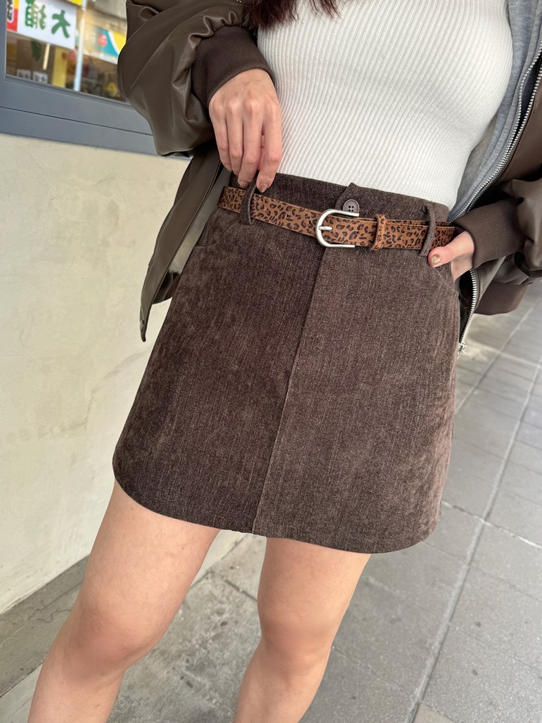 豹紋皮帶絨布短裙