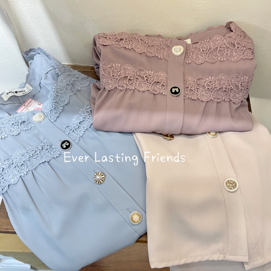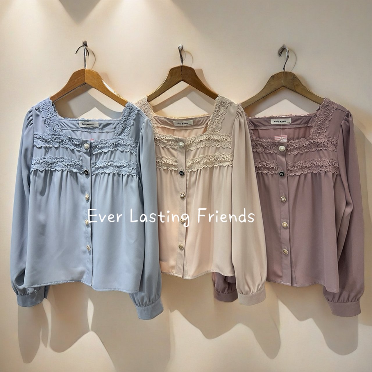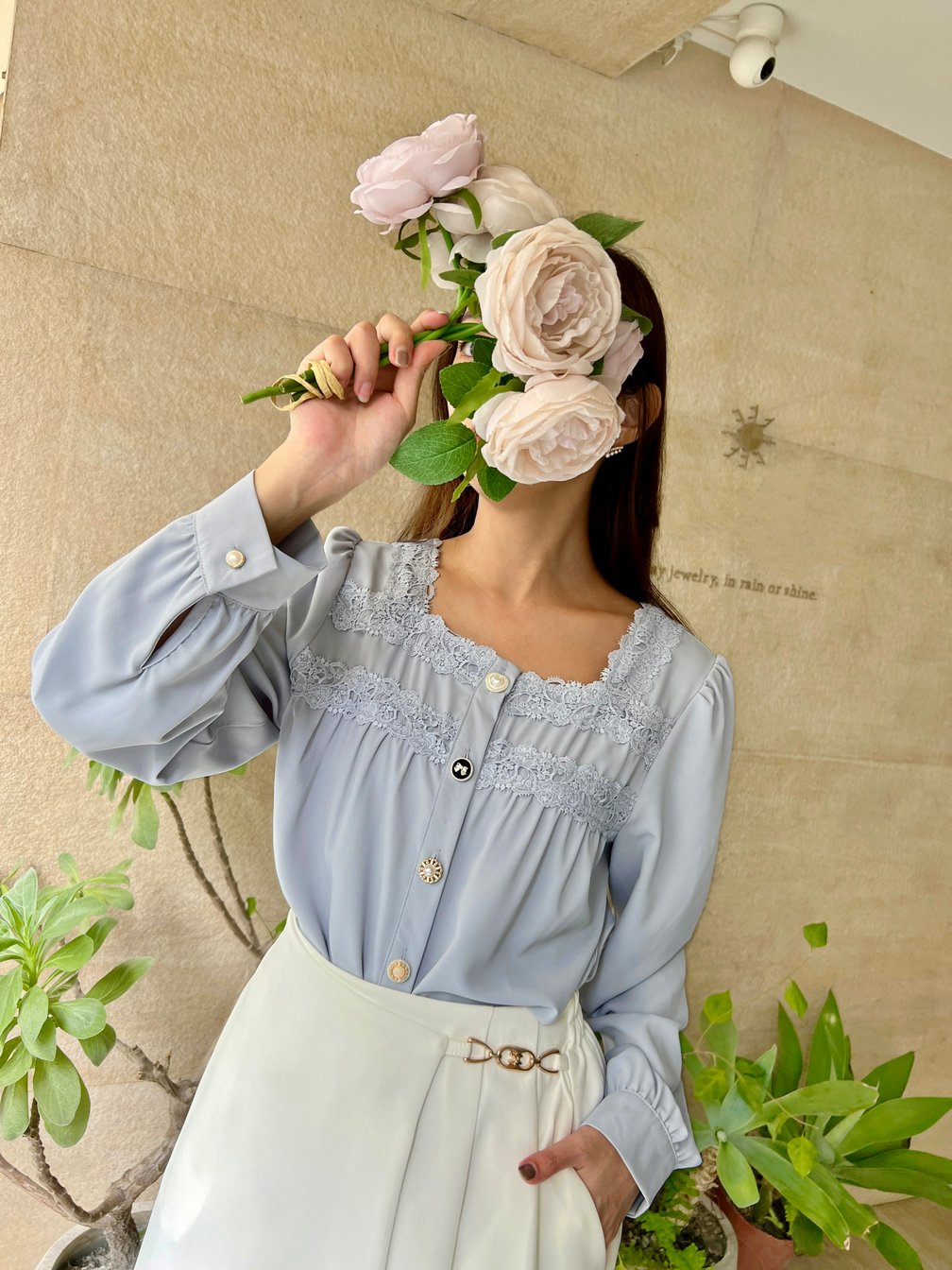 韓國ㄇ字滾蕾絲造型釦雪紡衣