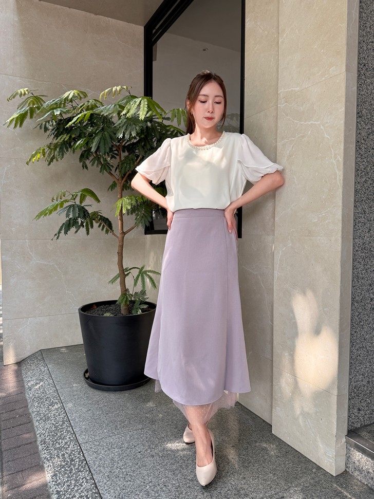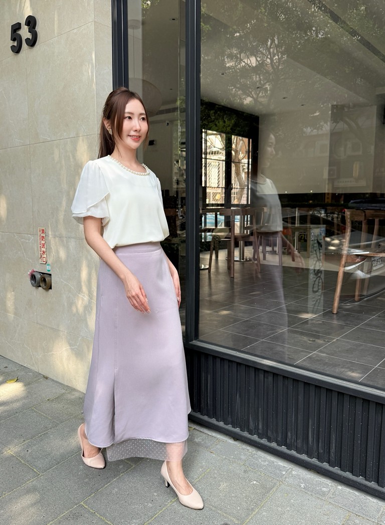 韓國下接點點紗挺版A字裙
