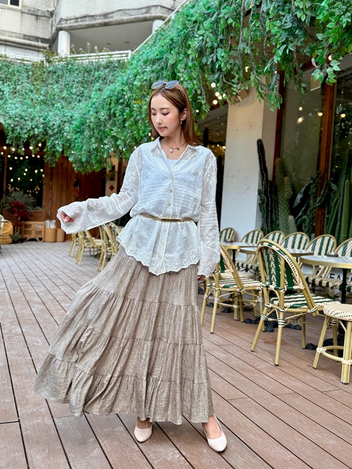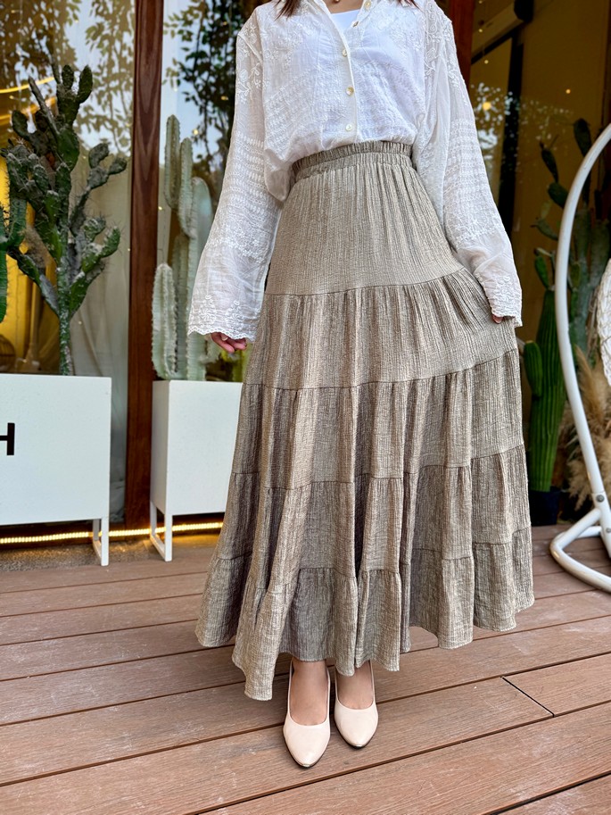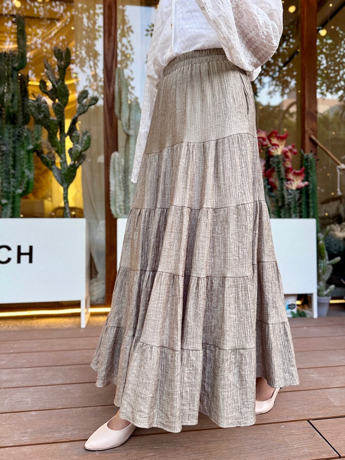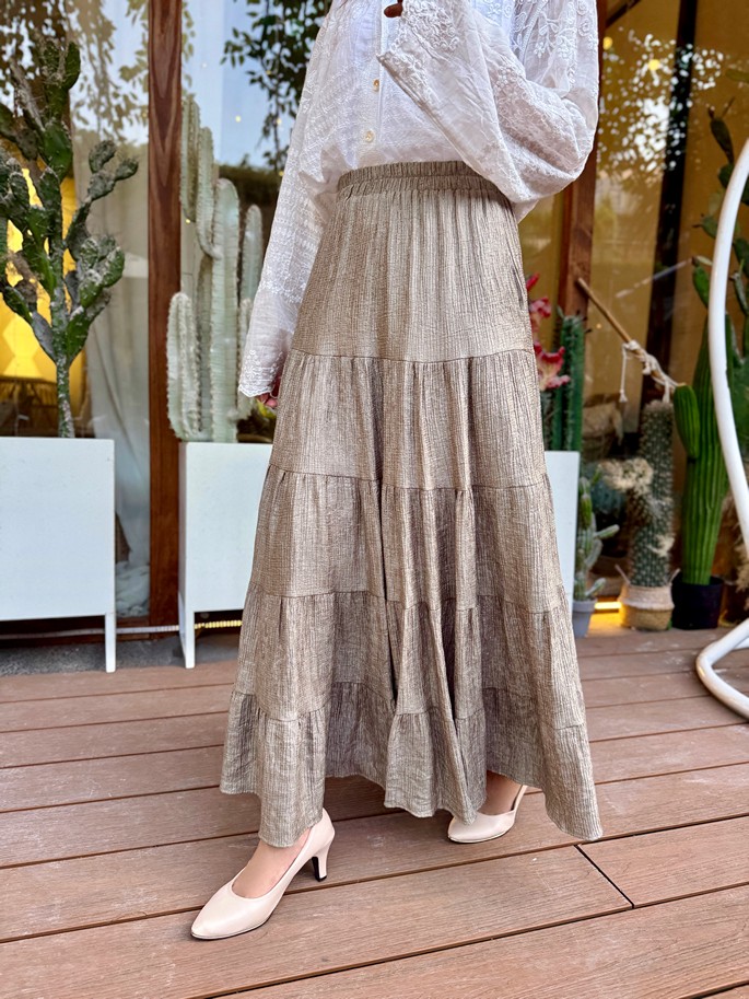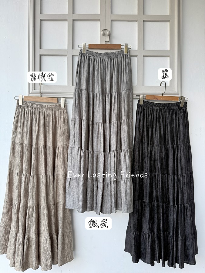 韓國皺絲布亮澤蛋糕長裙