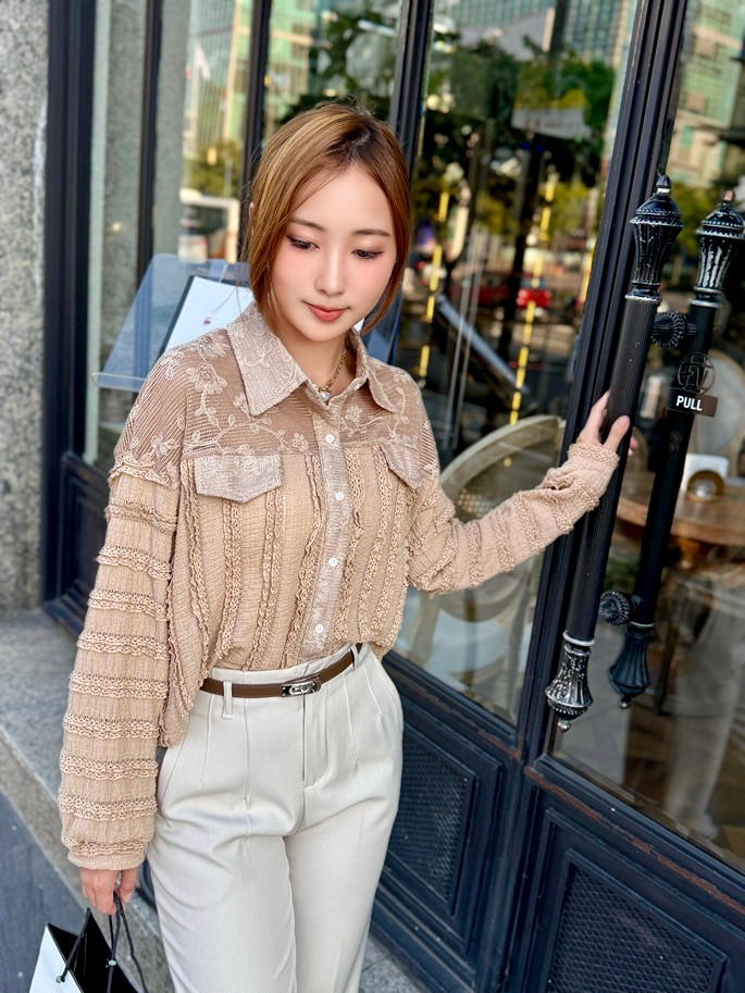‧尺寸:落肩58公分,胸63公分,下擺60公分,衣長53公分,手臂24公分,袖口13公分,袖長54公分