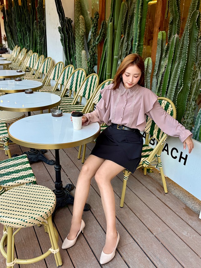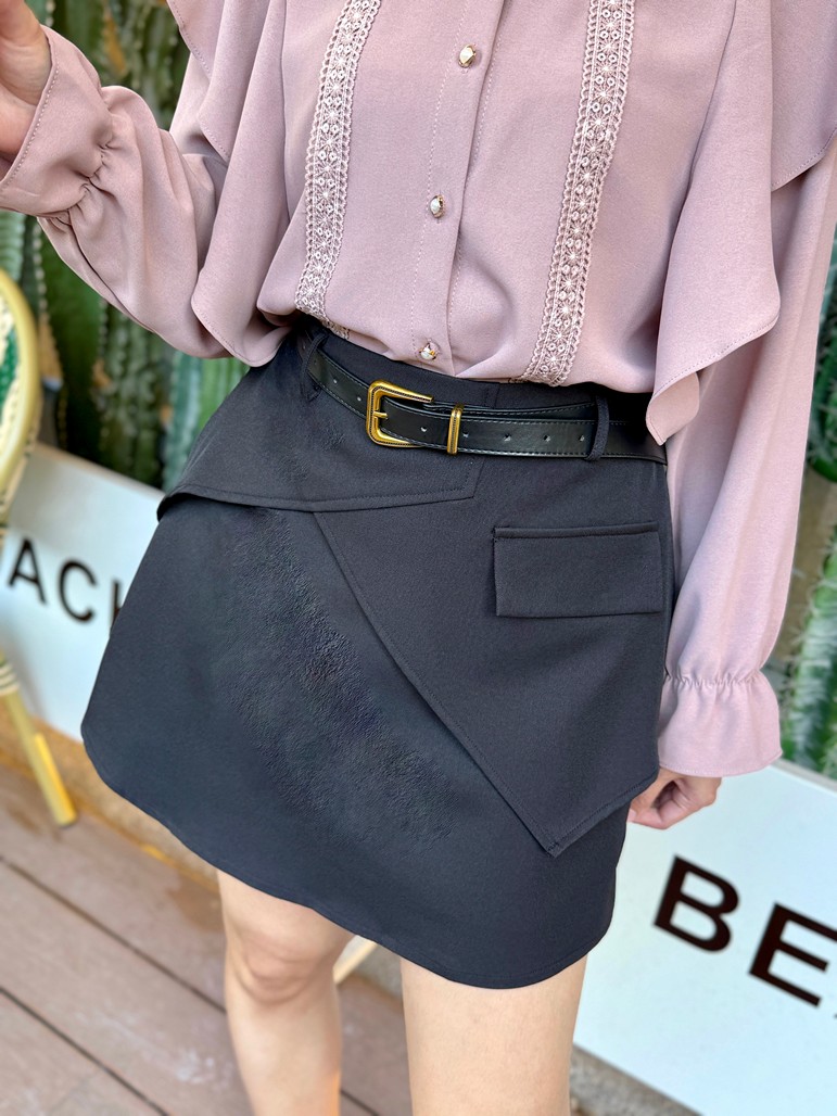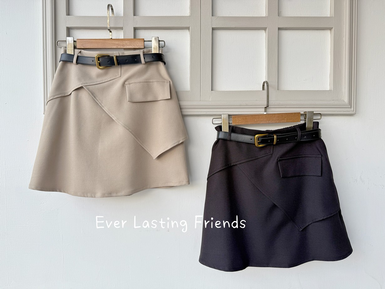 韓國附皮帶接片A字短裙